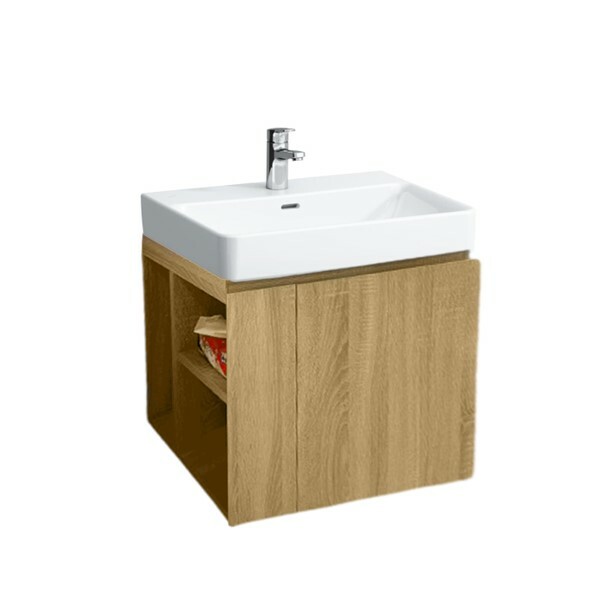 ▲此標準檯面盆櫃採用斜把手